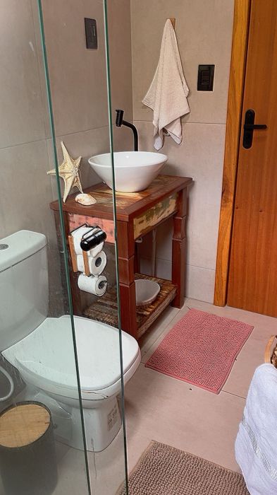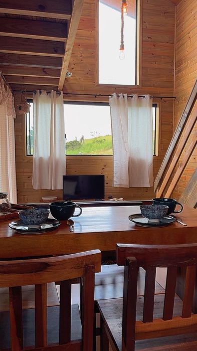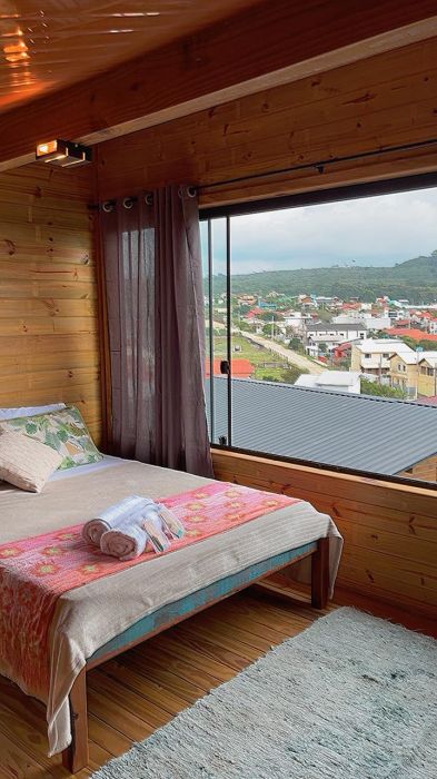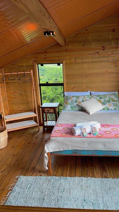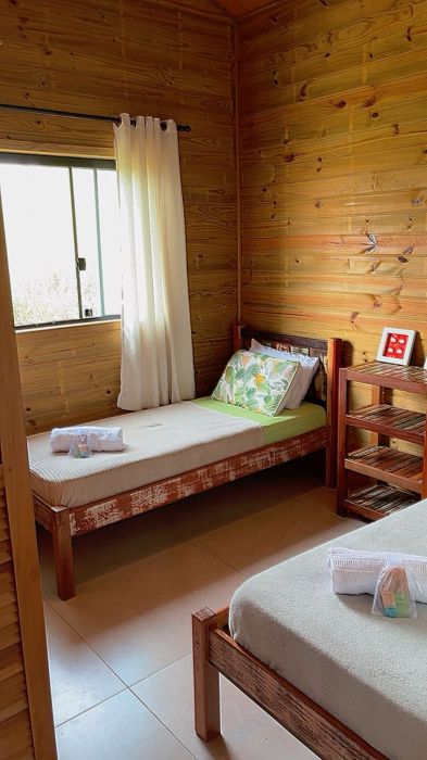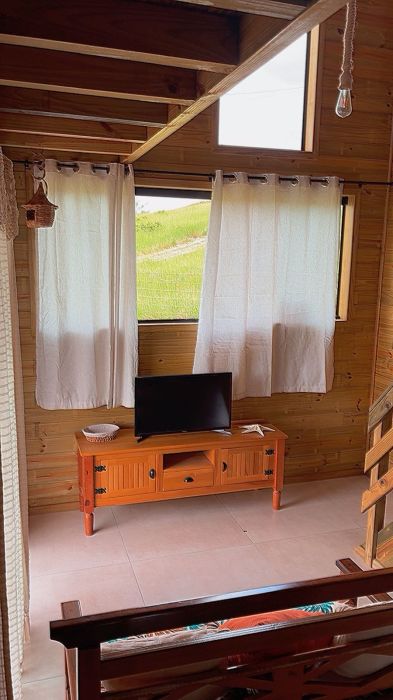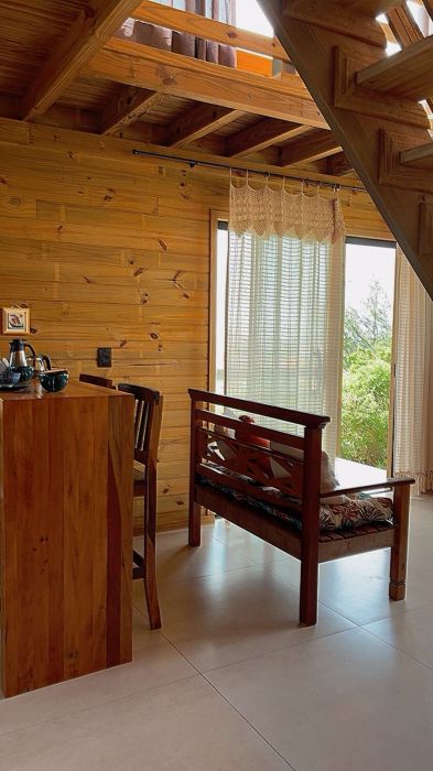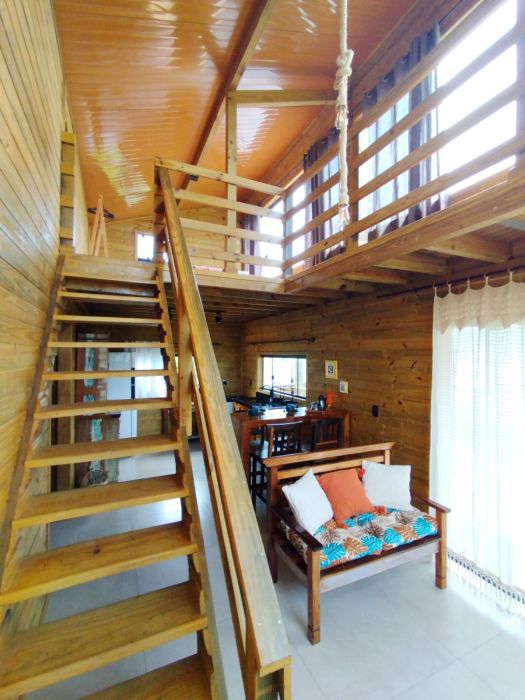 O mezanino traz um charme especial à casa e pode ser utilizado como dormitório adicional, espaço de descanso ou até mesmo home office, conforme a necessidade.