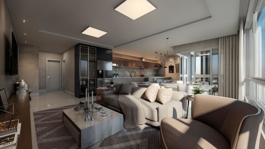 * Espaços Integrados: A sala de estar é convidativa e perfeita para receber amigos e familiares.